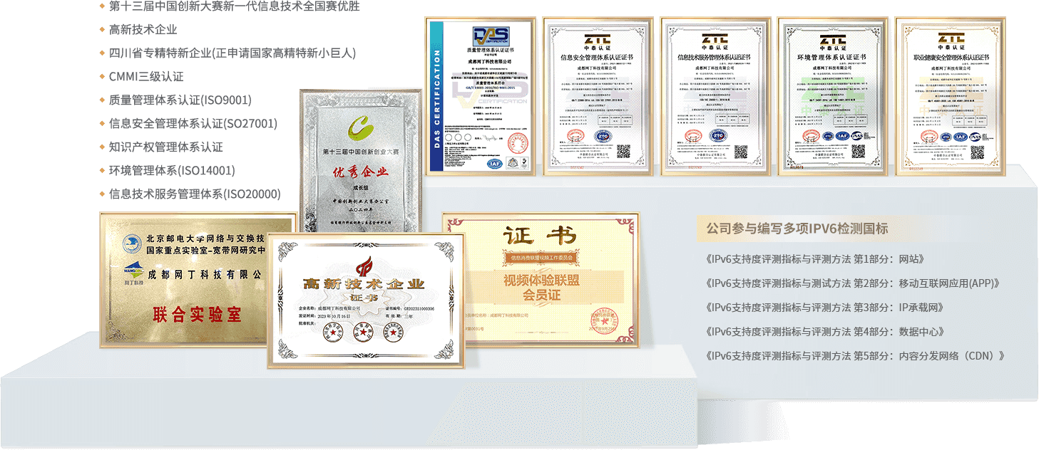 公司是中國寬帶質(zhì)量聯(lián)盟和國家視頻體驗聯(lián)盟會員,與北京郵電大學成立了"國家網(wǎng)絡質(zhì)量分析聯(lián)合實驗室",與工信部信通院、三大運營商研究院、各行業(yè)研究院、騰訊、阿里、華為、中興、等建立長期合作伙伴關(guān)系。擁有50+項國家發(fā)明或?qū)嵱眯滦图夹g(shù)專利及軟著,經(jīng)過多年自主研發(fā),形成了從運營商到企業(yè)網(wǎng)以及個人家庭網(wǎng)絡的智能網(wǎng)絡運維產(chǎn)品系列,為政府、運營商、金融、能源、交通、制造、互聯(lián)網(wǎng)等數(shù)十個行業(yè)客戶提供先進的下一代網(wǎng)絡質(zhì)量運維精細化管理解決方案。
